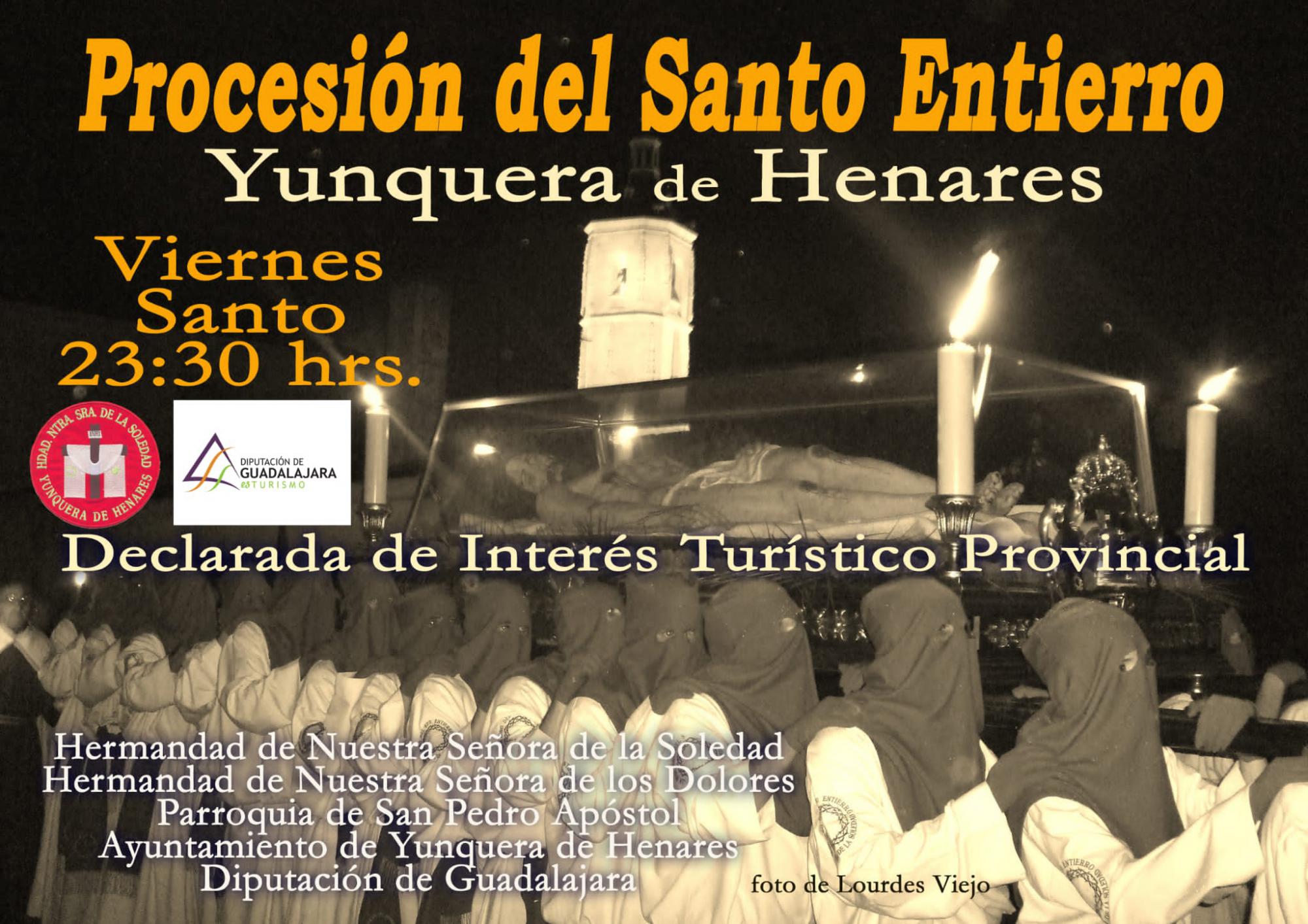 Las Hermandades de Nuestra Señora de la Soledad, Nuestra Señora de los Dolores junto a la Parroquia de San Pedro Apóstol y el Ayuntamiento de Yunquera de Henares han preparado, para conmemorar la Pasión de Cristo, un numeroso programa de actos, entre los que destaca la Procesión de «El Santo Entierro» declarada de interés turístico provincial.