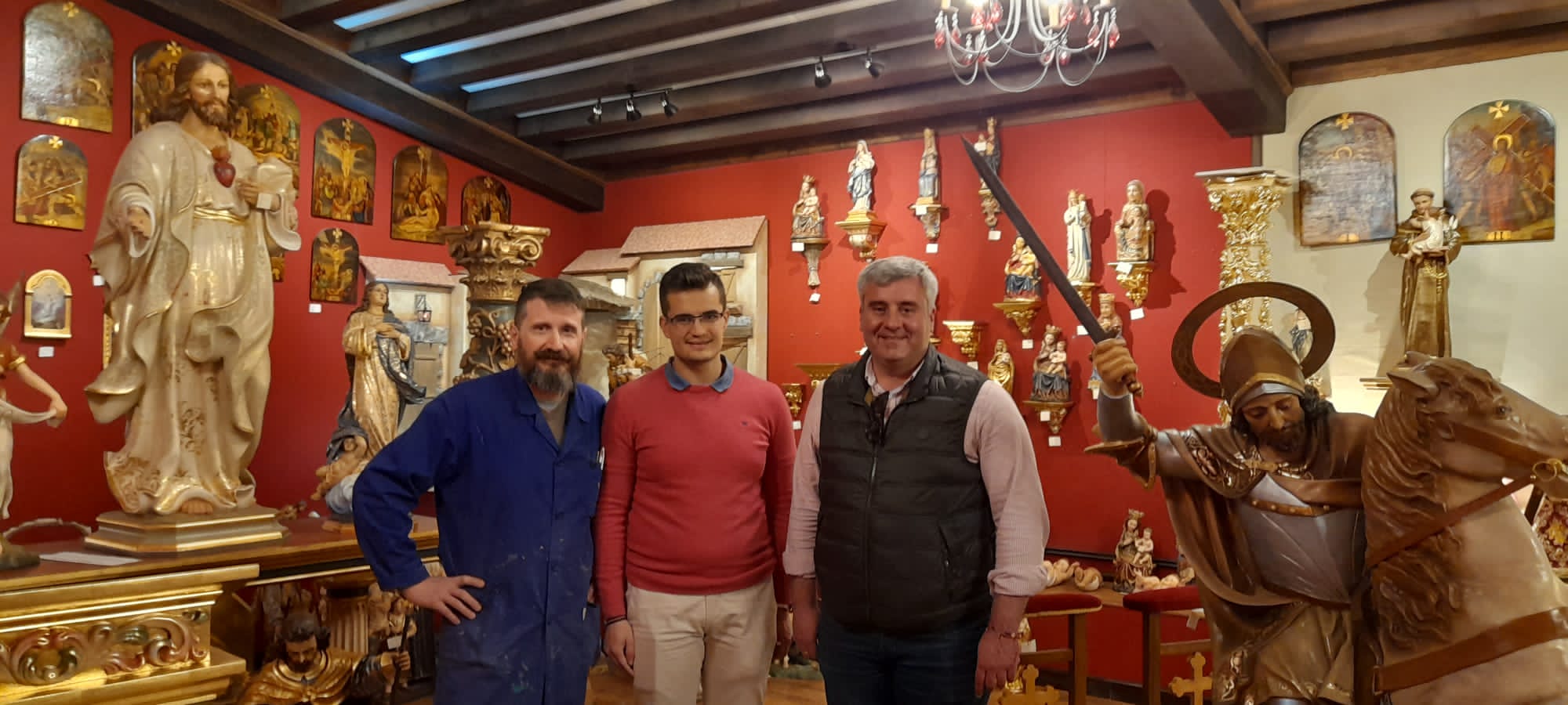El candidato del PP se ha interesado por los trabajos que realizan en plena Semana Santa y ha trasladado su admiración y reconocimiento por la labor que llevan a cabo, lo que les ha posicionado en referencia a nivel nacional e internacional. “Tenemos que sentirnos orgullosos de nuestros autónomos y empresas que son las que realmente crean empleo y generan riqueza no con pocos esfuerzos”, ha manifestado Alberto Ruiz, resaltando que en este taller, de donde salen al año cientos de piezas, se da trabajo a cerca de 25 personas. Por todo ello, Ruiz ha abogado porque “desde las administraciones se tiene que hacer lo posible por estar al lado de nuestras empresas para ayudarles y facilitarles su desarrollo; también desde el Ayuntamiento, aunque no se tengan las competencias en materia de empleo, se pueden desarrollar acciones e instar a rebajar la presión fiscal y aumentar la seguridad jurídica”. “Desde el PP apostamos por las políticas tributarias de exención frente a las políticas de subvención”, ha apuntado.
