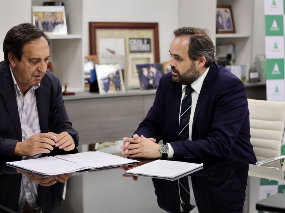 El presidente del Partido Popular de Castilla-La Mancha, Paco Núñez, ha mantenido un encuentro con el presidente nacional de la Asociación Agraria de Jóvenes Agricultores (ASAJA), Pedro Barato, con el que ha podido conversar sobre las medidas que llevará este martes a Bruselas en una intensa jornada de trabajo con representantes europeos vinculados al sector de la agricultura.