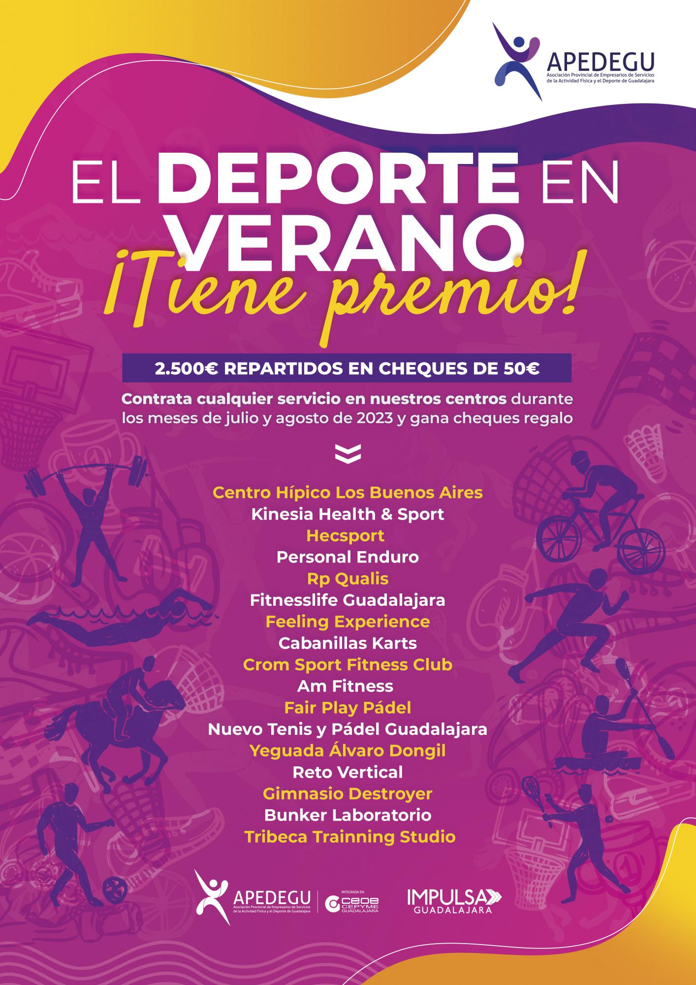 La Asociación provincial de Empresarios de Servicios de la Actividad Física y el Deporte de Guadalajara (APEDEGU), integrada en CEOE-CEPYME Guadalajara, y dentro del proyecto Impulsa Guadalajara, ha presentado su campaña “El deporte en verano tiene premio”, con el objetivo de dinamizar este sector en los meses donde la demanda es menor, sobre todo en toda actividad realizada en espacios cerrados.