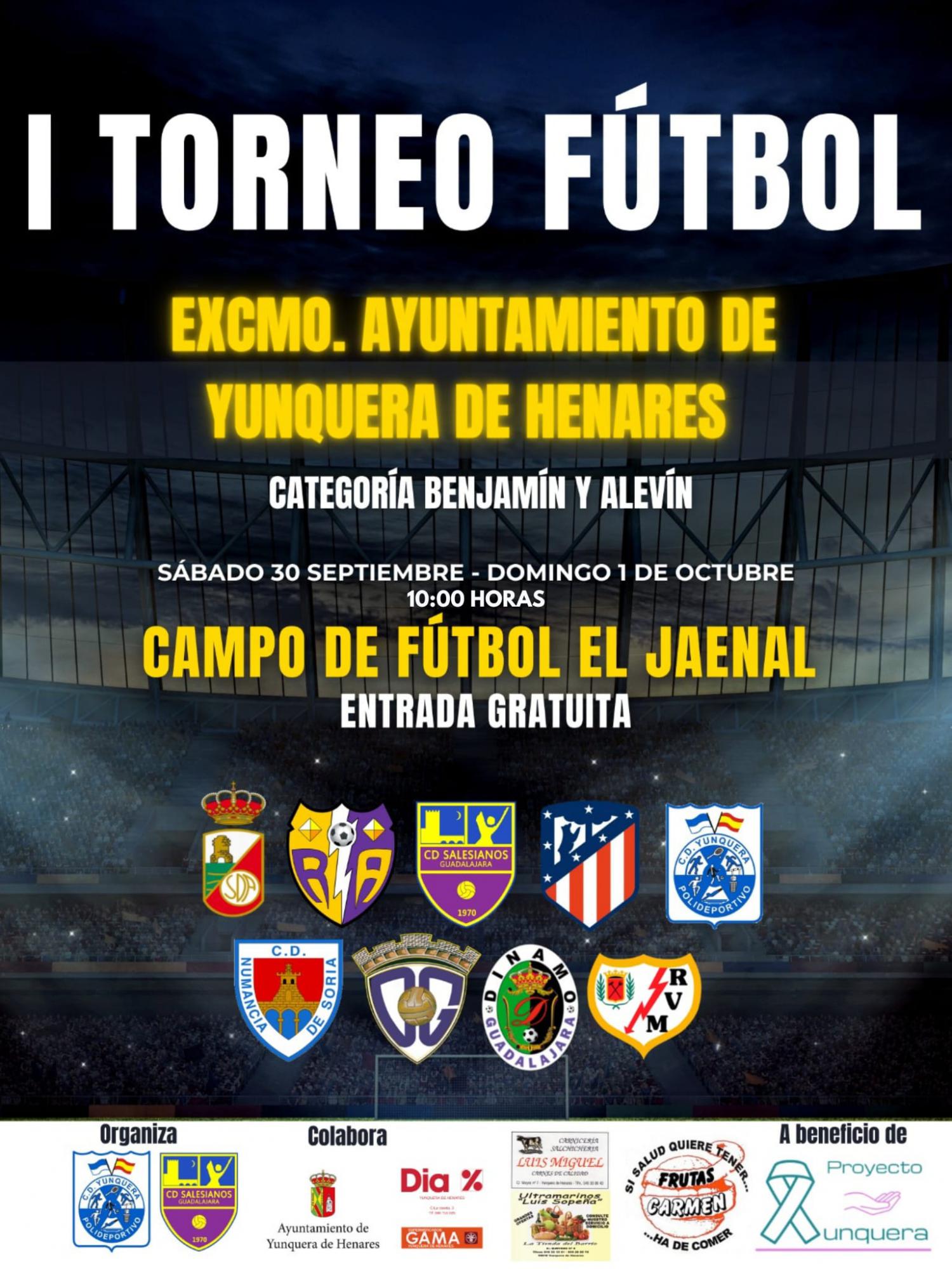 Los próximos días 30 de septiembre y 1 de Octubre Yunquera de Henares será la capital del fútbol base al celebrarse en esta el I Trofeo de Fútbol Excmo. Ayuntamiento de Yunquera de Henares en las categorías de Benjamín y Alevín y que contará con la participación de equipos de la talla de Atlético de Madrid, Fundación Rayo Vallecano, C.D.Guadalajara, RSD Alcalá, C.D.Salesianos, Dínamo Guadalajara, Rayo Arriacense, C.D.Numancia y el anfitrión, C.D.Yunquera.