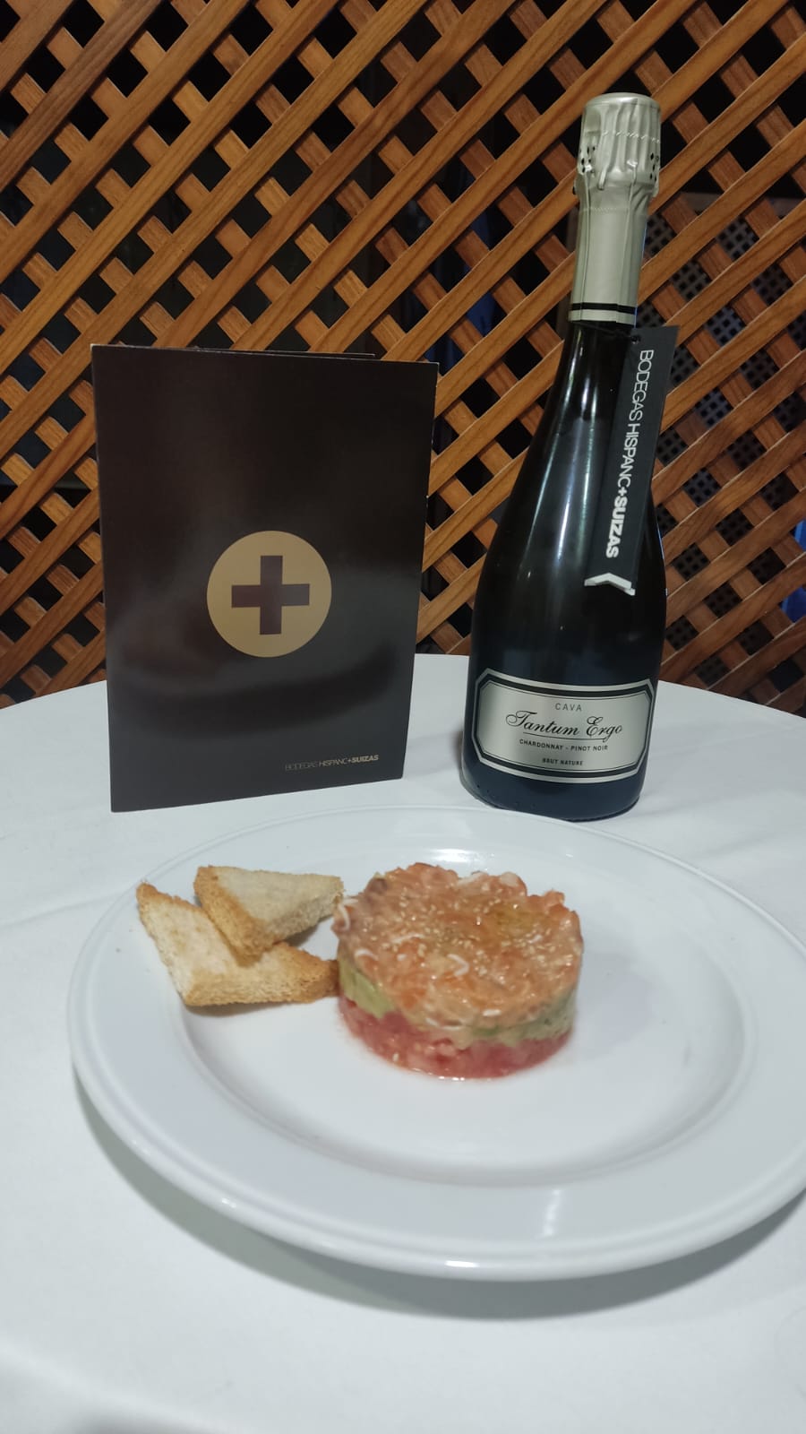 • Se comenzó con un Cava Tantum Ergo de chardonnais y pinot noir con un proceso de crianza de 22 meses y se armonizó con un Tartar de Salmón, tomate y Aguacate