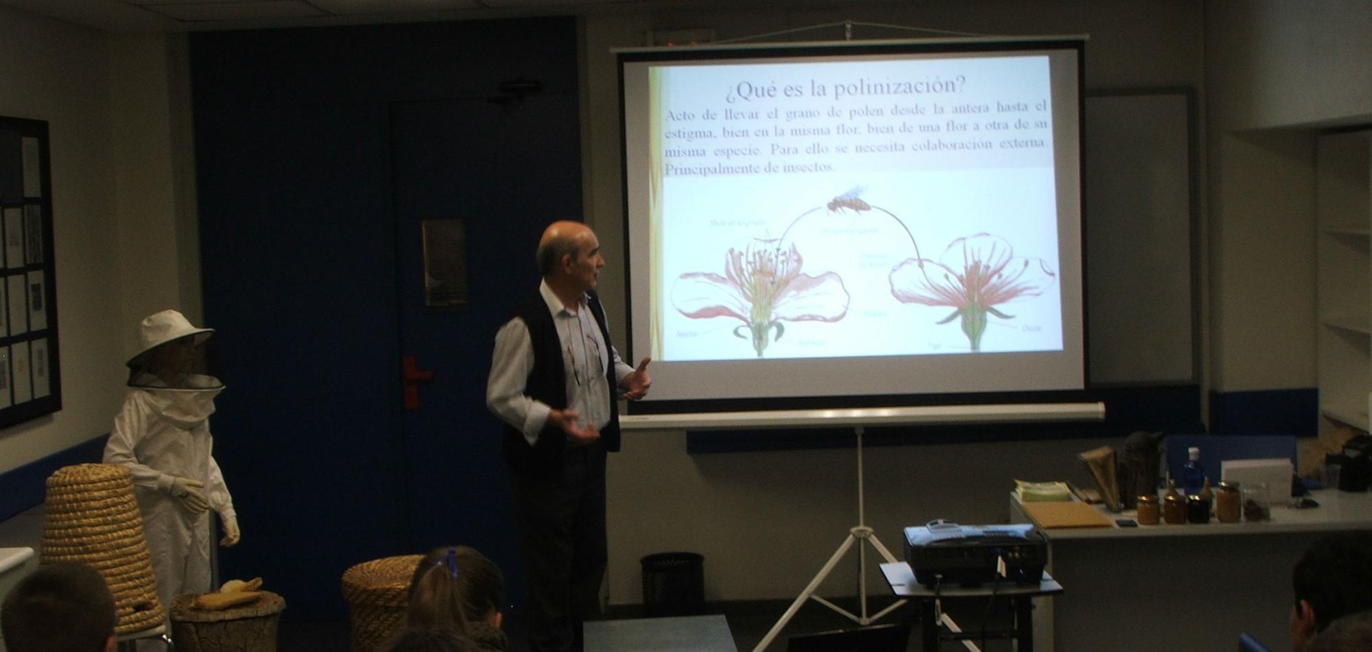 Un complemento didáctico a sus asignaturas de Ciencias Naturales, las sesiones tienen como objetivo mostrar la importancia de las abejas con la explicación y ayuda de más de 50 diapositivas, un pequeño video y numerosos materiales utilizados en la actividad apicola. Este es el temario: