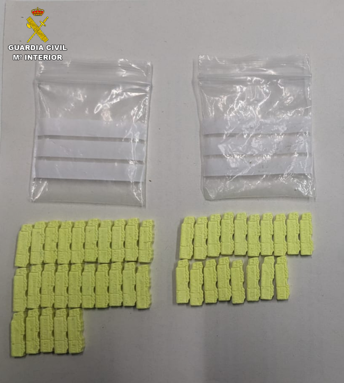 Una vez analizadas las pastillas se pudo determinar que esta sustancia se trababa de MDMA, procediendo a la detención del conductor del vehículo, un varón de 27 años, de nacionalidad española por un supuesto delito contra la salud pública por tráfico de drogas.