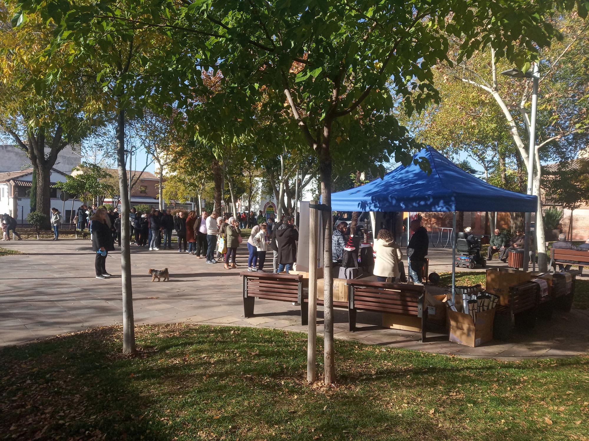El pasado 25 de noviembre, sin embargo, más de 1.000 personas se dieron cita junto a los tapetes verdes de esta coqueta plaza azudense. En una fresca mañana mayores, jóvenes, ancianos y niños formaron una fila que serpenteó, civilizada, entre paseos, árboles y aceras.