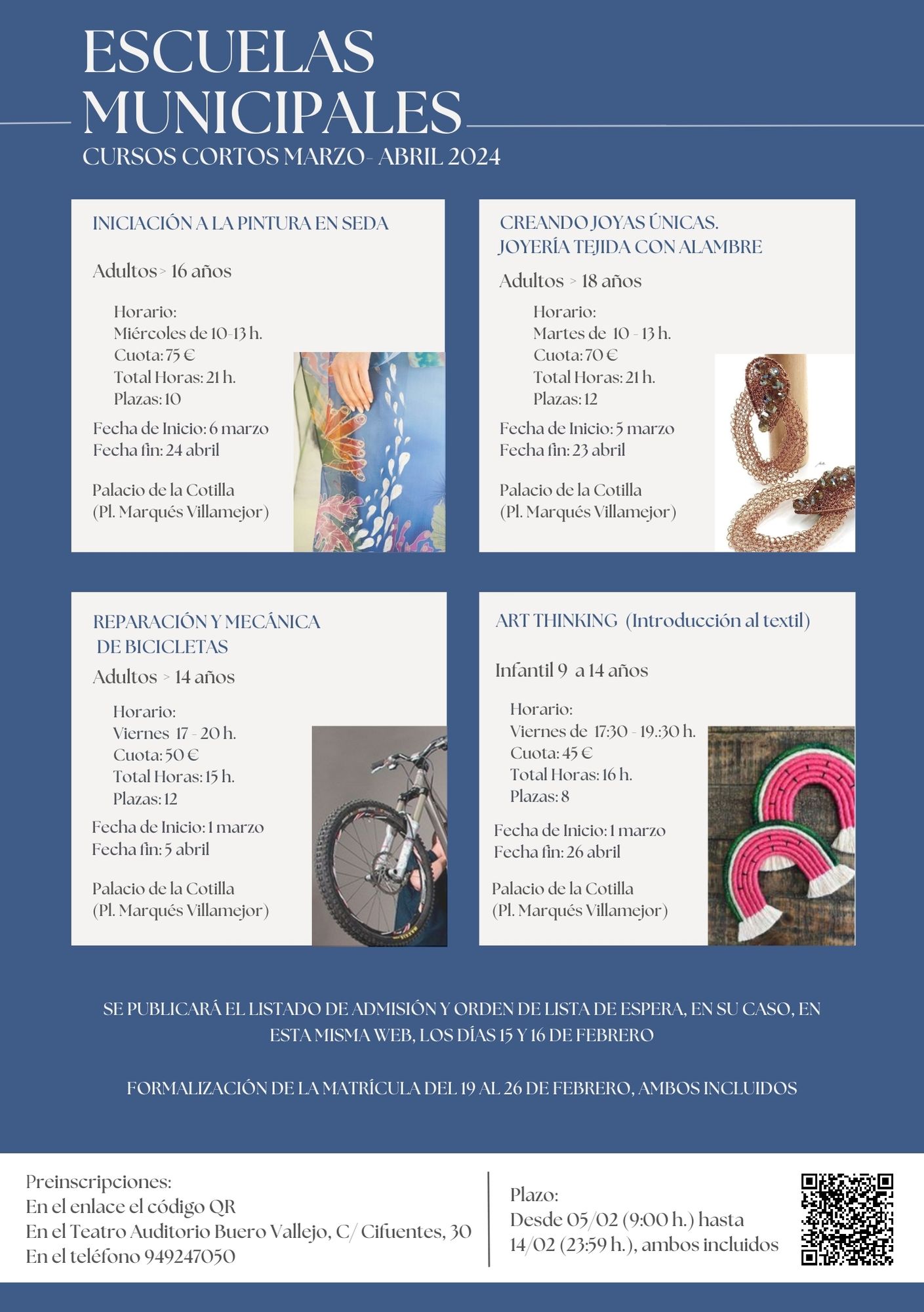 Las Escuelas Municipales han puesto en marcha la oferta formativa de los cursos cortos para los meses de marzo y abril.