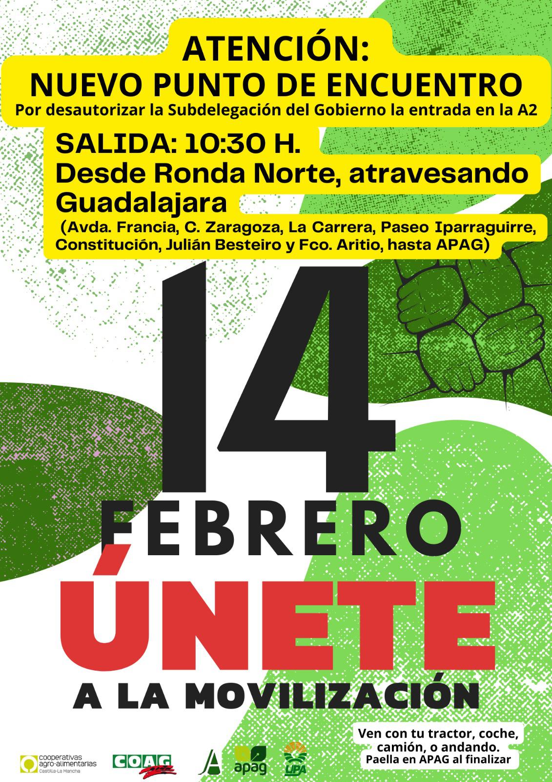 Los agricultores de Guadalajara se MOVILIZARÁN este miércoles a las 10:30 h. desde la Ronda Norte atravesando la ciudad hasta acabar en la sede de APAG