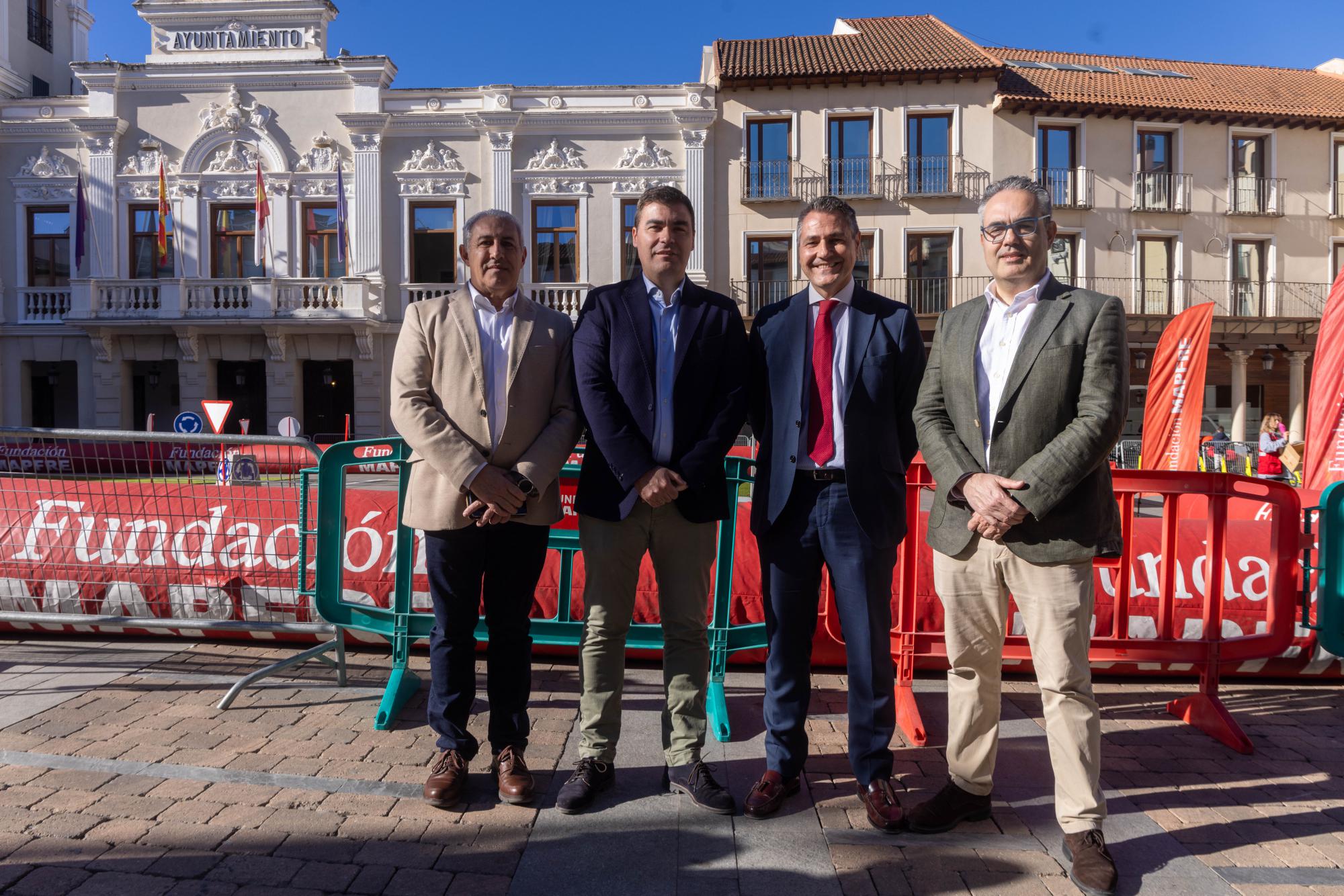 La actividad instalada en la Plaza Mayor y en la Plaza Jardinillo, en Guadalajara, que comenzó a funcionar este martes, era presentada hoy los concejales David García y Chema Antón, y los responsables de MAPFRE Antonio García, jefe de actividades de Prevención y Jesús del Castillo, director de Oficina de Guadalajara.
