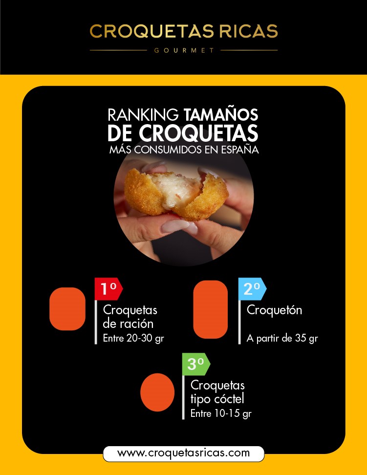 La tienda online de croquetas gourmet, Croquetasricas.com, quiere informar sobre un estudio que hemos realizado sobre los tamaños de croqueta que más se consumen en la actualidad por gramaje.