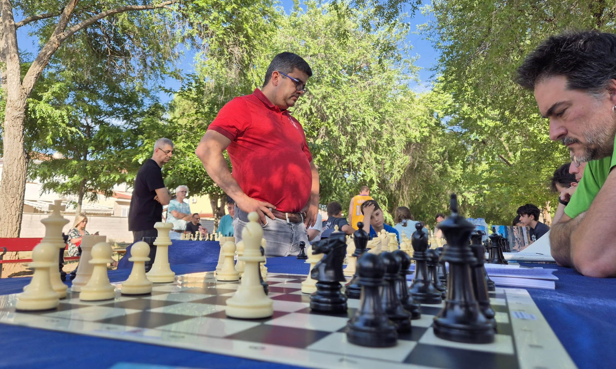 El parque Buero Vallejo acogió en la tarde de este jueves 13 de junio una magnífica tarde de ajedrez, en la “II Partida Simultánea” que organizaba la Asociación de Padres y Madres “Villa de Cabanillas”, del IES Ana María Matute. Este AMPA lleva ya dos años trabajando el ajedrez entre las actividades extraescolares del instituto, y esta gran partida simultánea se concebía como una gran fiesta ajedrecística de fin de curso. Más de 50 personas se apuntaron a la cita, además de algunas decenas de personas más que asistieron como público, para ver la evolución de los distintos juegos. Con un tiempo primaveral extraordinario y en un ambiente estupendo se fueron desarrollando los juegos, con participación de aficionados de todas las edades, desde niños a jubilados, y desde principiantes a algunas promesas interesantes.