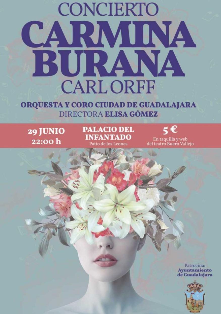 Debido a la alta probabilidad de tormentas que se anuncian en las previsiones meteorológicas del próximo sábado 29 de junio, el concierto de Carmina Burana de Carl Orff, interpretado por la Orquesta y Coro ‘Ciudad de Guadalajara’, se celebrará en el Teatro Buero Vallejo, en lugar de realizarse en el Palacio del Infantado como estaba previsto.