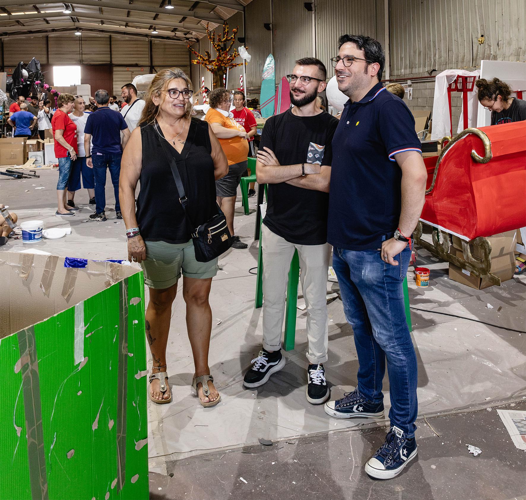 El alcalde, acompañado de los concejales de Fiestas y Sostenibilidad, ha visitado las naves donde se ultiman los detalles del Desfile de las Fiestas