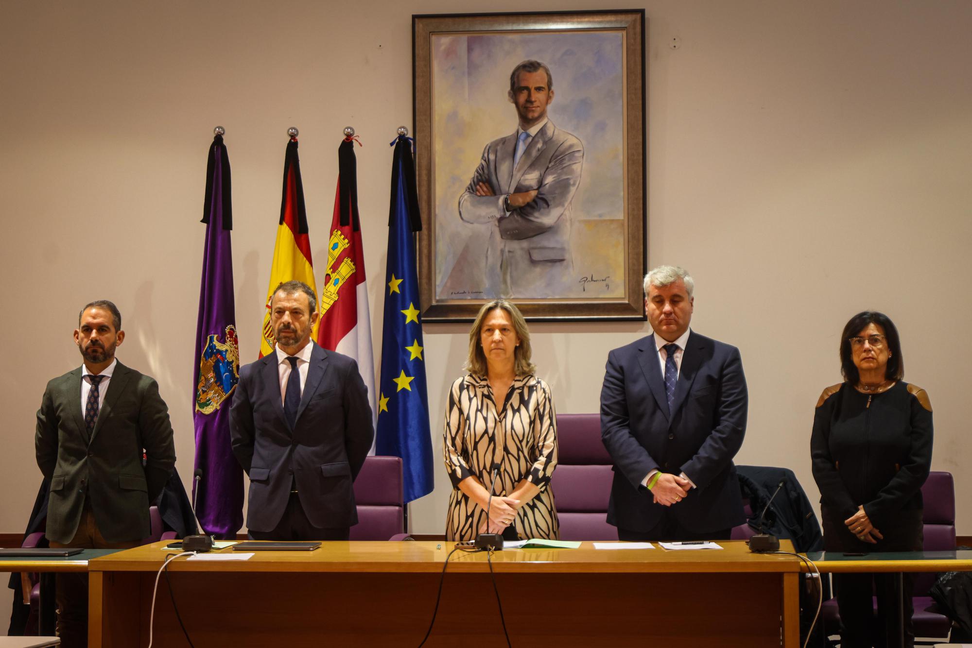 El Pleno extraordinario comenzó con un minuto de silencio en señal de duelo ante el estremecedor balance de pérdida de vidas humanas por el temporal de la DANA que afecta a varias regiones de España, entre ellas, Castilla-La Mancha, la Comunidad Valenciana y Andalucía, y una declaración institucional de duelo con la lectura por parte de la alcaldesa, Ana Guarinos, del decreto de luto oficial