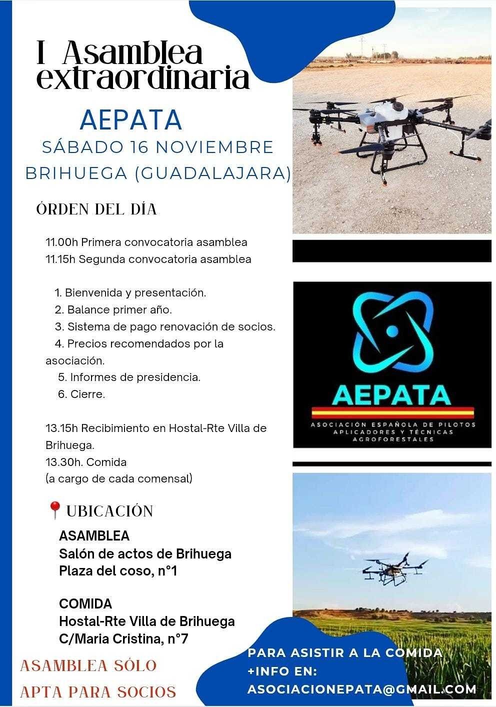 La Asociación Española de Pilotos Aplicadores y Técnicas Agroforestales, AEPATA, celebrará en Brihuega el 16 de noviembre su I Asamblea Extraordinaria