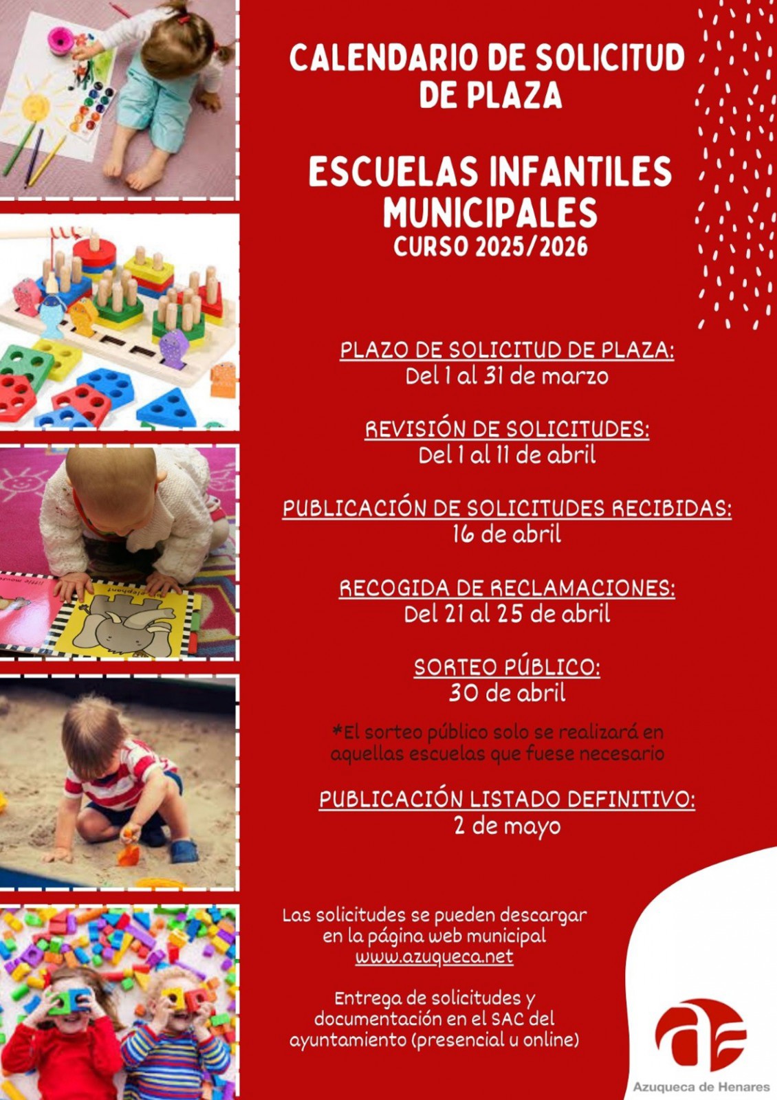 El Ayuntamiento de Azuqueca de Henares ha abierto el periodo para solicitar plaza en las Escuelas Infantiles municipales para el curso 2025/2026, que estará disponible hasta el 31 de marzo. Durante esta semana, se celebran jornadas de puertas abiertas en los centros educativos, donde las familias pueden conocer las instalaciones y el personal. Las solicitudes deben presentarse en el Servicio de Atención a la Ciudadanía (SAC) del Ayuntamiento, ya sea de forma presencial o telemática. Para más información y descargar la solicitud, visita el enlace proporcionado.