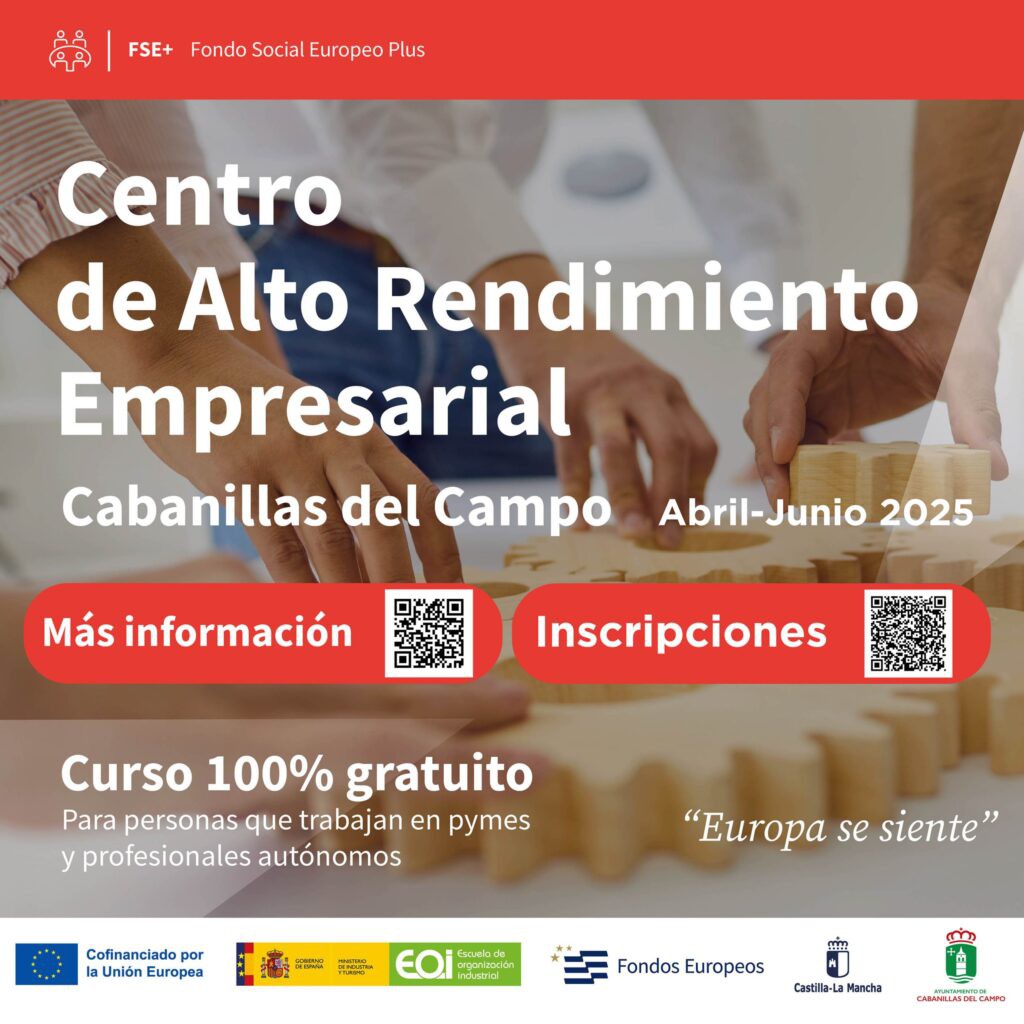 Cabanillas del Campo acogerá un programa de la Escuela de Organización Industrial (EOI) enfocado en el alto rendimiento empresarial, con inscripciones abiertas para empresarios, directivos, autónomos y personal técnico de PYMES. Este curso, que se desarrollará entre abril y junio en instalaciones municipales, busca mejorar la competitividad de las pequeñas y medianas empresas mediante formación y tutorías. El programa es gratuito y está financiado por el Fondo Social Europeo Plus y la Junta de Comunidades de Castilla-La Mancha. Los interesados pueden obtener más información y registrarse a través del enlace proporcionado.