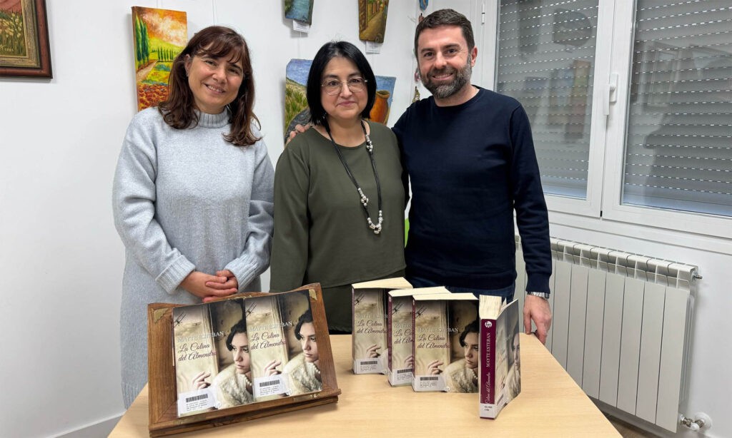 En el evento del jueves, Mayte Esteban, originaria de Guadalajara y con lazos familiares en Cabanillas, compartió sus experiencias y reflexiones sobre su novela “La colina del almendro”, que había sido previamente leída por los asistentes. La autora estuvo acompañada por el concejal de Cultura, Luis Blanco, y la coordinadora del Club, Cheles López.