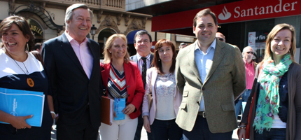 El presidente del Partido Popular de Albacete, Francisco Núñez, y el candidato por el Partido Popular al Parlamento Europeo y eurodiputado, Luis de Grandes, acompañados por diversos responsables provinciales del PP, han participado en una mesa informativa que el PP de Albacete ha instalado en la Plaza del Altozano.