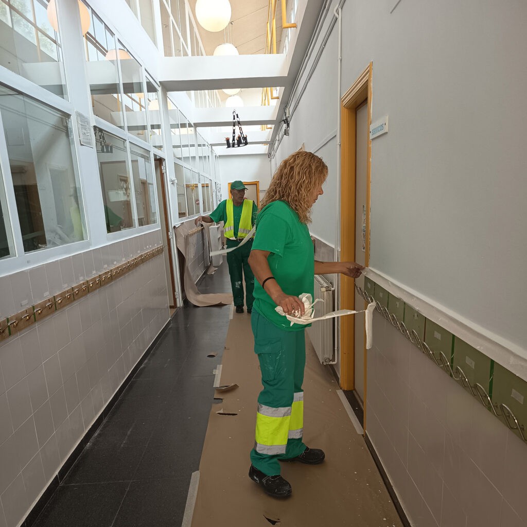 Los operarios del Plan de Empleo, junto con las Brigadas Municipales, han sido fundamentales en esta tarea. Se han centrado en la pintura de aulas y pasillos que necesitaban una renovación, así como en pequeñas obras de albañilería que incluían el rellenado de grietas y la reposición de enchufes y azulejos. Además, se han realizado arreglos en diversos elementos del mobiliario escolar, abarcando desde persianas y ventanas hasta sillas y mesas.