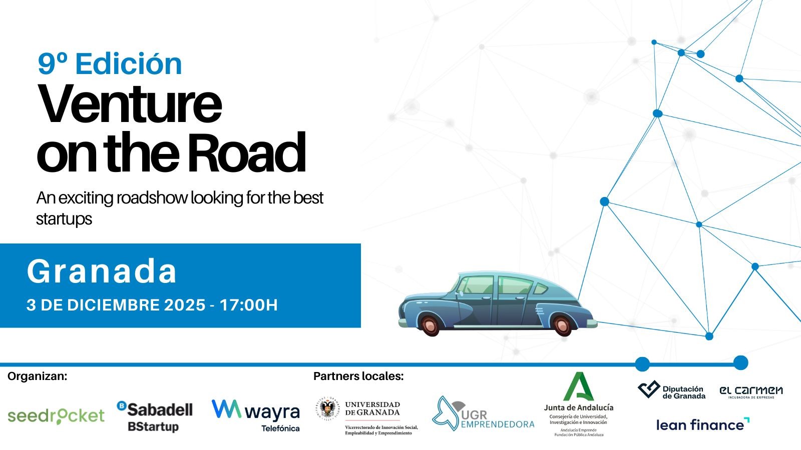 Venture on the Road Andalucía tendrá lugar el próximo 3 de diciembre en la incubadora El Carmen, donde se anunciará la startup ganadora. La convocatoria está abierta hasta el 24 de noviembre a través del sitio web Venture On The Road. Este evento cuenta con el respaldo de socios locales como la Universidad de Granada, la Diputación de Granada, UGR Emprendedora, la Incubadora El Carmen, Lean Finance y Andalucía Emprende.