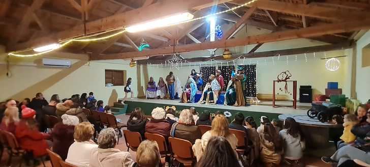 Acto seguido, en el Edificio de Servicios Múltiples, engalanado al efecto, alrededor de cuarenta niños y niñas, que previamente habían entregado sus cartas al Paje Real el día 27 de diciembre, recogieron con gran emoción los regalos que Melchor, Gaspar y Baltasar les tenían preparados. A la finalización los presentes pudieron degustar el tradicional chocolate con bizcochos.