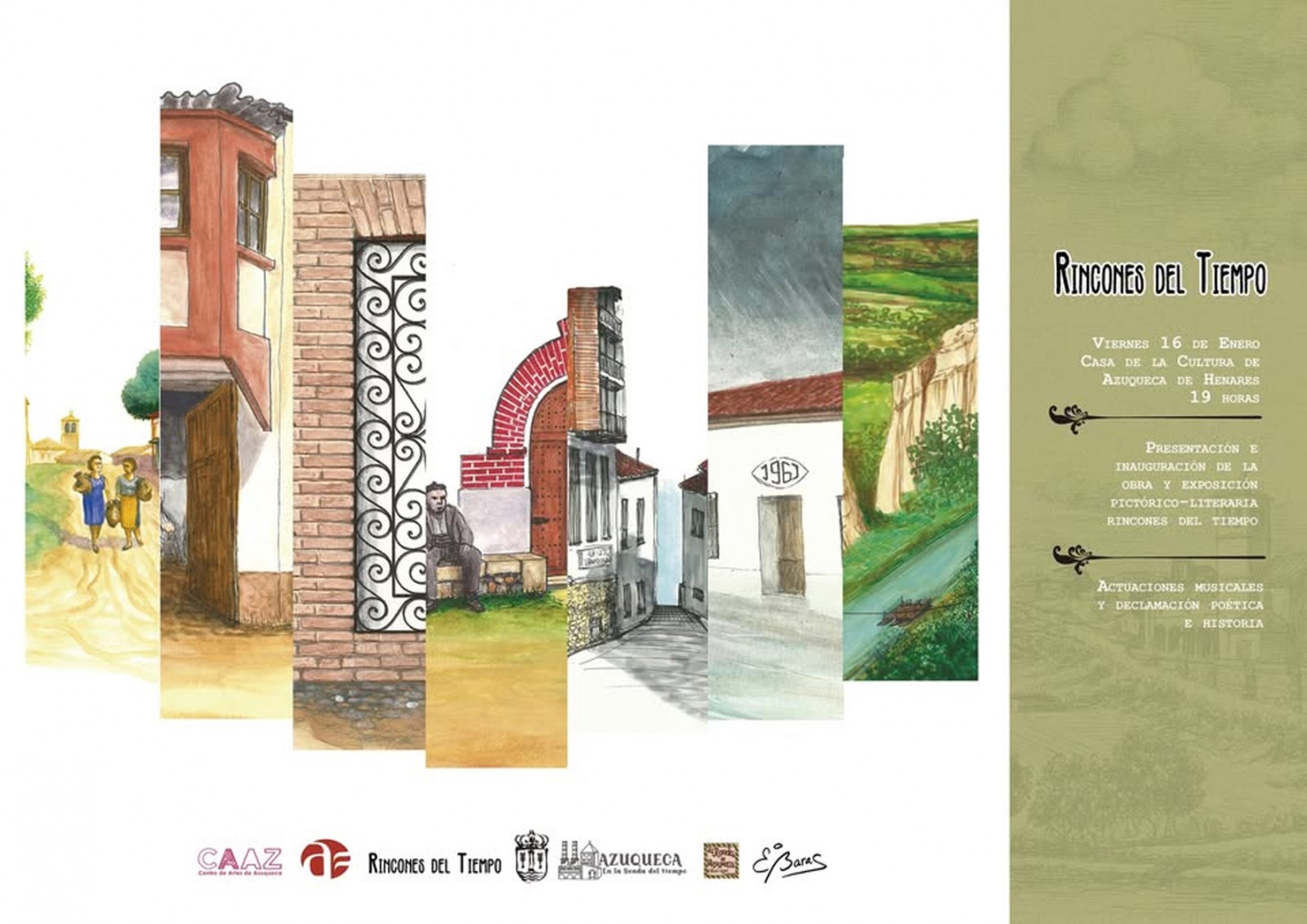 La Casa de la Cultura se convertirá este viernes, 16 de enero, en el escenario de la presentación del libro “Rincones del Tiempo”, un proyecto impulsado por la asociación Azuqueca en la Senda del Tiempo. El evento comenzará a las 19 horas y contará con la presencia de los autores Cecilio García “Ceci”, quien aportará sus poemas, y Eugenio Baras, responsable de las ilustraciones.