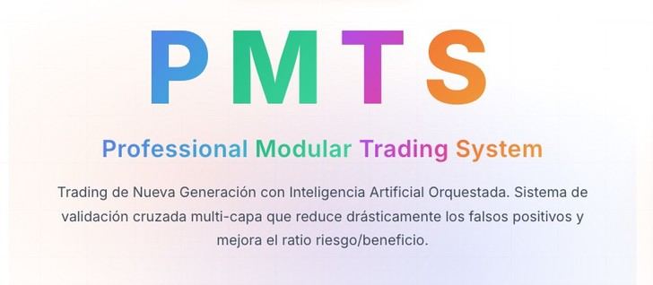 PMTS (Professional Modular Trading System) es un sistema de trading algorítmico basado en inteligencia artificial, desarrollado por Elysium Media FZCO, que ha logrado una rentabilidad del 123,67 % en sus primeros ocho meses de operación real.