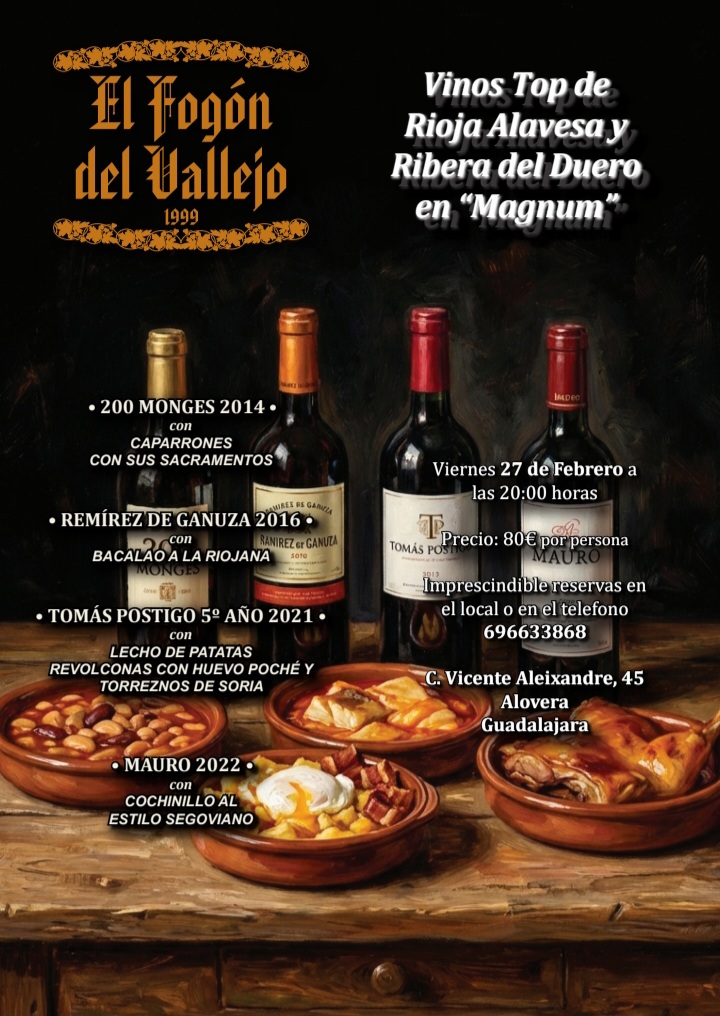 Todos los vinos en formato Magnum y decantados apropiadamente unas 3 horas antes de la Cena.
