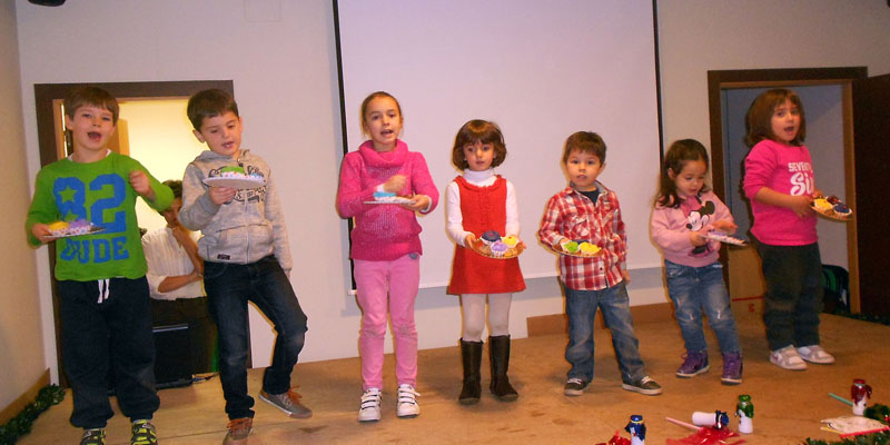 Este año, la actuación que precederá al encendido va a corresponder a cuatro niños y niñas que recitarán unas poesías navideñas, mientras que la música les va a corresponder a otros ocho, de entre tres y nueve añitos. Habitualmente ensayan en el taller de teatro del AMPA del colegio, que en estos días se ha convertido en taller musical de Villancicos. Lo dirige Carol Gutiérrez. La monitora, trabajando en equipo con los niños y de acuerdo con sus opiniones, ha seleccionado dos canciones, “Los colores vamos al portal” y “Los tres pastelitos”. “Uno lo estamos trabajando mediante pictogramas y el otro con la práctica. También les hemos pedido ayuda a los padres. Va a ser muy alegre”, dice Carol.
