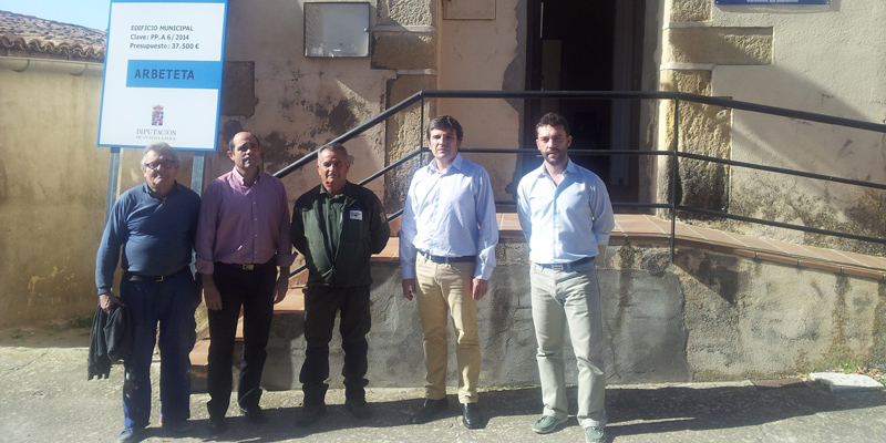 Por otra parte, acompañado del alcalde de Arbeteta, Leandro Alonso, el diputado de Infraestructuras y los técnicos han comprobado el estado del edificio municipal que alberga el consultorio médico y cuya planta baja será reformada para eliminar las humedades de los muros antes de proceder a pintar el interior y el exterior del inmueble. Por otra parte, está previsto pavimentar con hormigón una parte de la calle Peligros. En esta visita se procedía a la firma del acta de replanteo de la obra del edificio, que tiene un presupuesto de 37.500 euros.