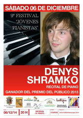 Shramko es el ganador del premio de público del Festival de Jóvenes Pianistas correspondiente a 2013. El festival, que se celebra habitualmente en primavera convocado por Bell´Arte Europa, invita a participar en este certamen a tres jóvenes concertistas que empiezan su carrera. El cuarto, es el mejor según el público del año anterior. Las circunstancias políticas de Ucrania, país del que es originario Shramko, habían hecho que su concierto como mejor joven pianista de 2013, se retrasara. Finalmente su concierto tendrá lugar en el puente de la Constitución, en el auditorio de El Pósito, concretamente el sábado, día 6 de diciembre, a las 20:00 horas.