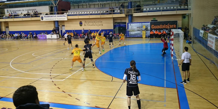 El partido comenzó con un ritmo trepidante y ambos equipos se alternaban el balón con fluidez. Gol arriba, gol abajo, el Guadalajara y el Aranda se tutearon durante los dos primeros parciales, con un juego muy rápido y gran acierto ofensivo por parte de ambos equipos. Al llegar al cuarto parcial, el BM Villa de Aranda iba dos goles por delante en el marcador y César Montes se vio obligado a pedir tiempo muerto para recomponer su equipo. Tras cinco minutos de sequía goleadora y un quinto parcial de 10-13, llegó el gol número once del Guadalajra, de la mano prodigiosa de Chiuffa, que fue el máximo goleador de la primera parte, con cinco aciertos, igualado con Oswaldo dos Santos, del Aranda .Bailó la bola el Villa de Aranda durante buena parte del minuto 29 para marcar su gol 17, mientras que Guadalajara metió su décimocuarto gol en el último segundo de la primera parte.