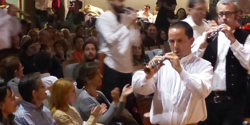Lleno total en el salón de actos del Centro San José para escuchar y ver los sonidos y los bailes tradicionales y típicos de estas fiestas, de la mano de profesores y alumnos del área de Música y Bailes de la Escuela de Folklore de la Diputación de Guadalajara.