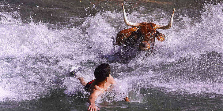 El premio especial de las Vacas por el Tajo fue para Tomás Jiménez por la imagen “Pues sí que nada”. “Es muy característica y significativa del festejo, plena de fuerza”. El premio especial para la mejor foto del Encierro de Brihuega, está hecha a escasos centímetros del suelo. “Es una foto de dificultad técnica, que destaca la figura del corredor en la Avenida de la Constitución”.
