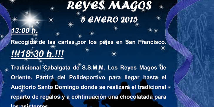 El Ayuntamiento de Cifuentes tiene todos los dispositivos preparados para la recepción de S.S. M.M. Los Reyes Magos de Oriente. Ellos tienen prevista su llegada a este municipio el sábado 5 de enero a mediodía, de este modo podrán descansar después de un largo viaje, para que a partir de las 4 de la tarde comiencen su trabajo; los primeros en recibir los regalos de los Reyes Magos serán los abuelos y abuelas de la Vivienda de Mayores. A continuación, Sus Majestades se desplazarán en el autobús que el Ayuntamiento ha habilitado para ellos, a la Residencia de Mayores “Los Almendros”, allí repartirán regalos a los residentes, en estas instalaciones tomarán un refrigerio para coger fuerzas y seguidamente trasladarse al Polideportivo Municipal desde donde partirá la Cabalgata. Los Reyes Magos recorrerán las calles de este municipio hasta llegar al Auditorio Santo Domingo donde atenderán las peticiones de todos los niños y niñas. Tras la bienvenida que les dará el Alcalde José Luis Tenorio, dará comienzo el tradicional reparto de regalos y el acto finalizará con una chocolatada que podrán disfrutarla todos los asistentes.