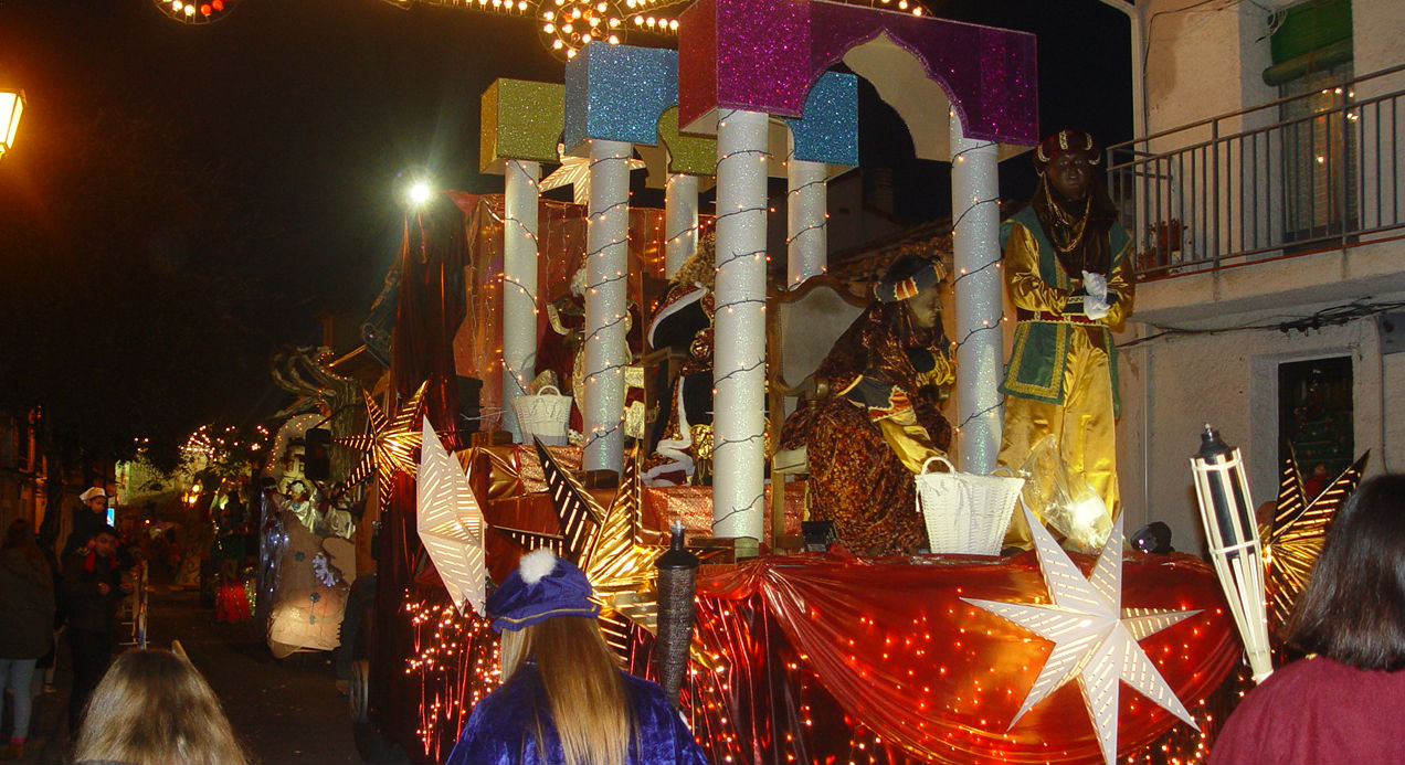 Subidos en su colorida y luminosa carroza, y flanqueados por una comitiva y por atractivas y divertidas carrozas ocupadas por niñas y niños de distintas edades, llenas también de colorido y confeccionadas tanto por el Ayuntamiento como por asociaciones o particulares, Melchor, Gaspar y Baltasar han protagonizado un desfile cargado de sonrisas de pequeños boquiabiertos y padres ilusionados, de luces de todo tipo, música navideña por parte de la banda, malabarismos de títeres y con antorchas, y miles de caramelos a repartir entre el público asistentes.