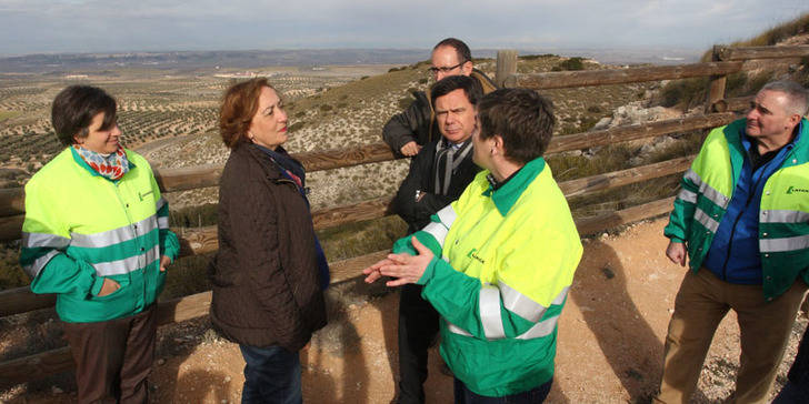 Soriano ha visitado el Centro de Interpretación de la Naturaleza de la Mesa de Ocaña que ha puesto en marcha esta compañía, así como la restauración que está realizando del hueco de la cantera, en la que se está reintroduciendo la especie en peligro de extinción Vella pseudocytisus, arbusto conocido como ‘pitano’.
