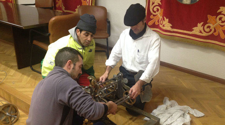 Todos los años en Nochevieja se nos muestra la gran obra de arte que es el reloj de la Puerta del Sol de Madrid, que todos admiramos. Pues bien, en Aranzueque, un pequeño pueblo de la provincia de Guadalajara, pueden presumir de tener un reloj de torre centenario, similar al de Madrid, al que todos los días el alguacil del pueblo sube a la torre a darle cuerda. Aunque durante unos días ha estado averiado, debido a la gran cantidad de suciedad acumulada que hacía que se bloquearan sus mecanismos, ha sido restaurado por los relojeros Félix Juarranz, y José Sánchez. Lo han desmontado por completo, limpiado, ajustado y aceitado para que vuelva a lucir su alegría, esplendor, y potencia.