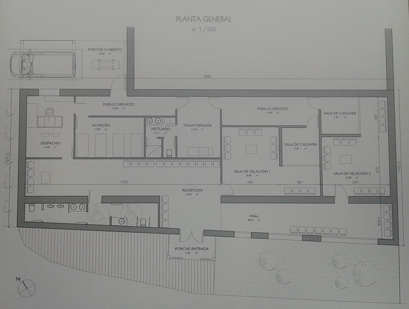 El proyecto de Mémora se basa en la racionalidad constructiva y propone la rehabilitación del edificio existente pero también la adecuación de los accesos y el acondicionamiento del entorno. El edificio del velatorio será de una sola planta con entrada, recepción, despacho, almacén, vestuario, sala de tanatopraxis y dos salas de velación con sus correspondientes cámaras.