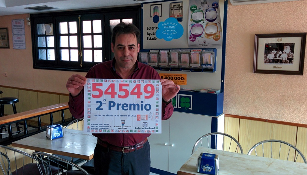 En el sorteo nº14 extraordinario de San Valentín celebrado el sábado 14 de febrero de 2015, uno de los agraciados con el segundo premio, ha sido vendido por terminal en el Punto de Venta mixto 38085 de la localidad de Humanes.
