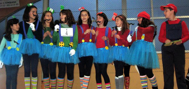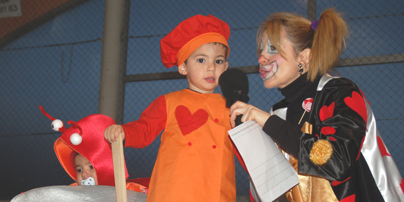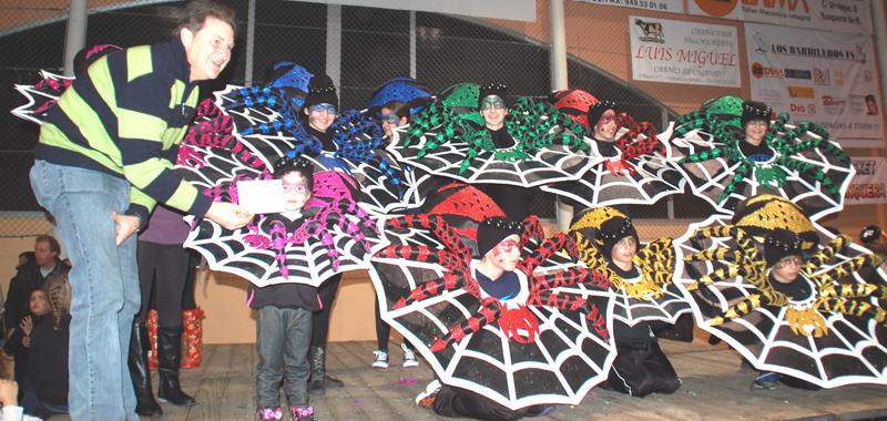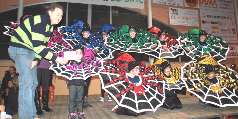 Una vez en el recinto deportivo, dió comienzo el tradicional concurso de disfraces presentado por la simpatica concejala Esther Gutierrez Machuca que lució un bonito look de payaso. Uno a uno tanto los disfraces individuales como de los grupos inscritos fueron desfilando por el escenario para que el jurado, compuesto por representantes de asociaciones y clubes locales, pudiera valorar debidamente con sus votaciones, la puesta en escena y los modelos que lucían todos los participantes. A continuación, mientras el jurado hacia el recuento de los votos, todos los asistentes pudieron reponer fuerzas degustando pan con chorizo y limonada y al mismo tiempo disfrutaron de acordes carnavalescos.