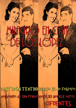 El sábado 21 de febrero, a las 19,30 horas, el teatro San Francisco de Cifuentes abrirá sus puertas para acoger a la compañía “Pantopón Teatro” que representará la obra “Milagro en casa de los López” de Miguel Mihura.