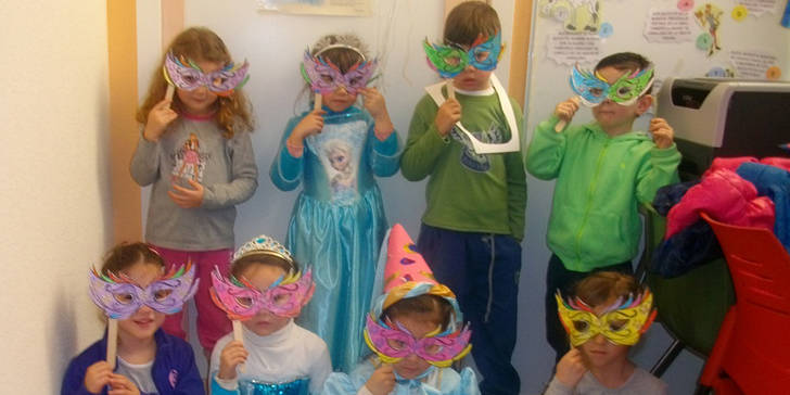 Los niños participaron en un taller de mascaras venecianas a las que pusieron mucho colorido. Todos los niños pasaron una tarde muy divertida, después se realizaron unas fotos para que todos tuvieran un recuerdo de carnaval.