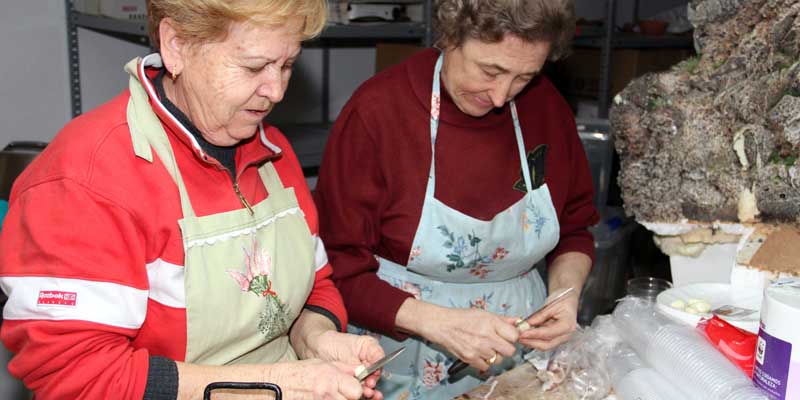 “La víspera, las mujeres picaban la cebolla, que se dejaba escurrir toda la noche, y preparaban el arroz para hacer las morcillas, había quien las hacía sólo de la una y no del otro, o bien mezclando ambos ingredientes con la sangre del cerdo, según el gusto de cada familia”.