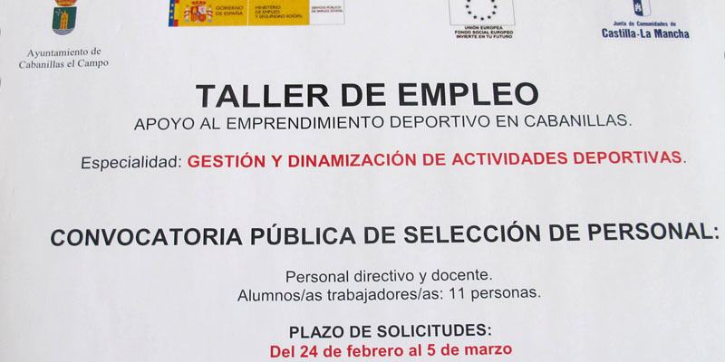 Una vez cerrado este período, se llevará a cabo la selección de los alumnos y del equipo directivo que estará al frente de esta nueva acción formativa que promueve el Ayuntamiento campiñero y financia la Unión Europea, el Gobierno de España y la Junta de Comunidades de Castilla-La Mancha. Los estudiantes-trabajadores –11 en total– recibirán 960 de formación teórica y práctica, impartida por el monitor del taller y coordinada por su director. Según consta en la programación, abordarán fórmulas de gestión y dinamización de eventos deportivos, socorrismo acuático, promoción del deporte entre niños y jóvenes, hábitos de vida saludables y medidas antiviolencia en el terreno de juego. Se espera que los alumnos comiencen su formación en la primavera de 2015.