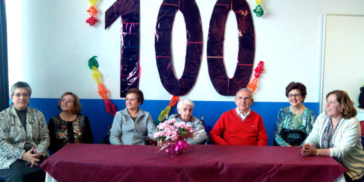 Usuarios y familiares de la residencia de mayores El Balconcillo celebran el centenario de Evarista Fuerte