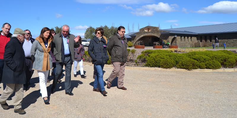 Durante la visita, Mar España ha estado acompañada por la senadora Ana González, el diputado provincial Antonio Ruiz, así como por el responsable de las bodegas, José Manuel Fuentes.