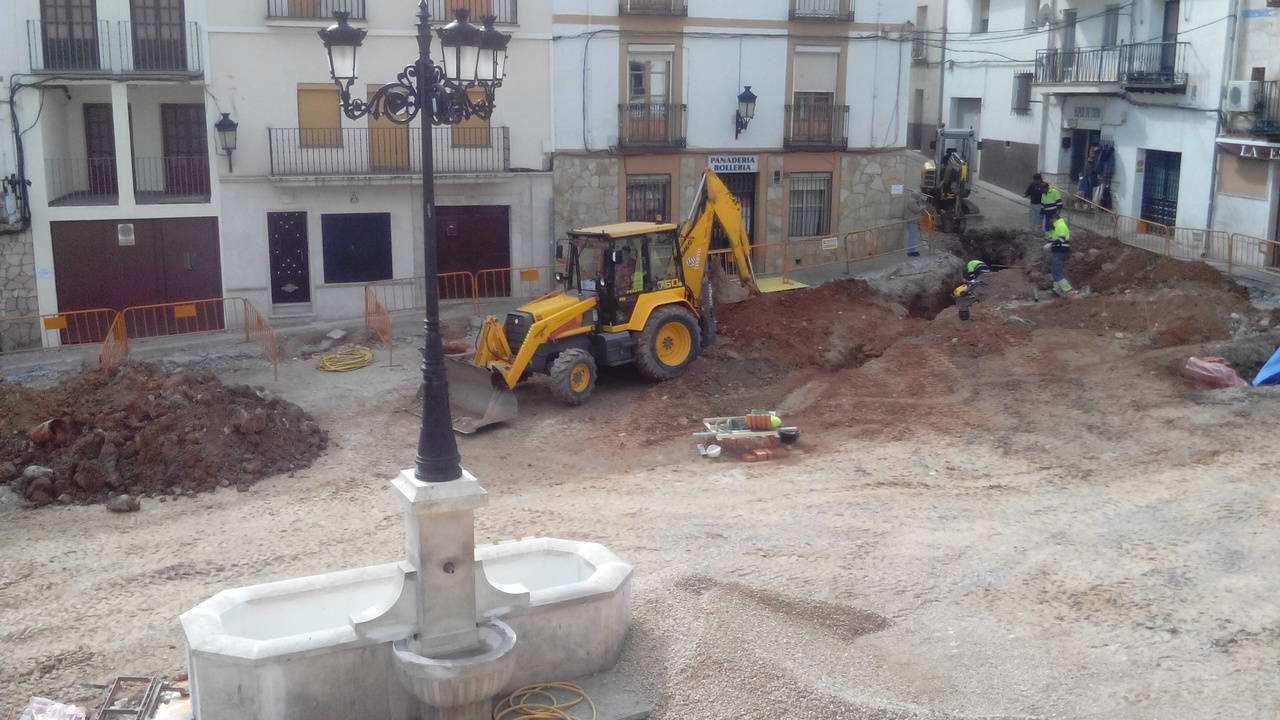 obras de reforma de la Plaza Mayor de Horche “avanzan con un ritmo óptimo según lo planificado". Y preocupan muy seriamente los perjuicios que se están ocasionando por el corte al tráfico de la plaza, y por la cercana celebración de actos tradicionales como las procesiones de Semana Santa y el Concurso del Vino.