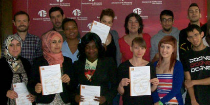 El alcalde, Pablo Bellido, y el concejal de Cohesión Social e Integración, José Luis Escudero, han participado en la entrega de diplomas a los 25 jóvenes de Azuqueca de Henares que han completado los cursos de monitor deportivo y auxiliar de geriatría. Ambas acciones formativas se enmarcan en el programa 'Voy a encontrar empleo', que impulsa la asociación Vasija con la colaboración del Ayuntamiento y la financiación de la Obra Social "la Caixa".