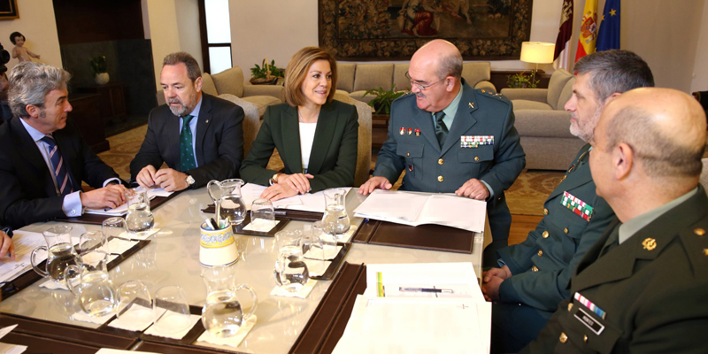 La presidenta de Castilla-La Mancha, María Dolores Cospedal, ha presidido la reunión de la comisión de seguimiento y control del convenio suscrito entre el Ejecutivo autonómico y el Gobierno de España para la realización de obras de construcción, conservación, reparación y mejora de diferentes casas cuartel de la Guardia Civil en Castilla-La Mancha.